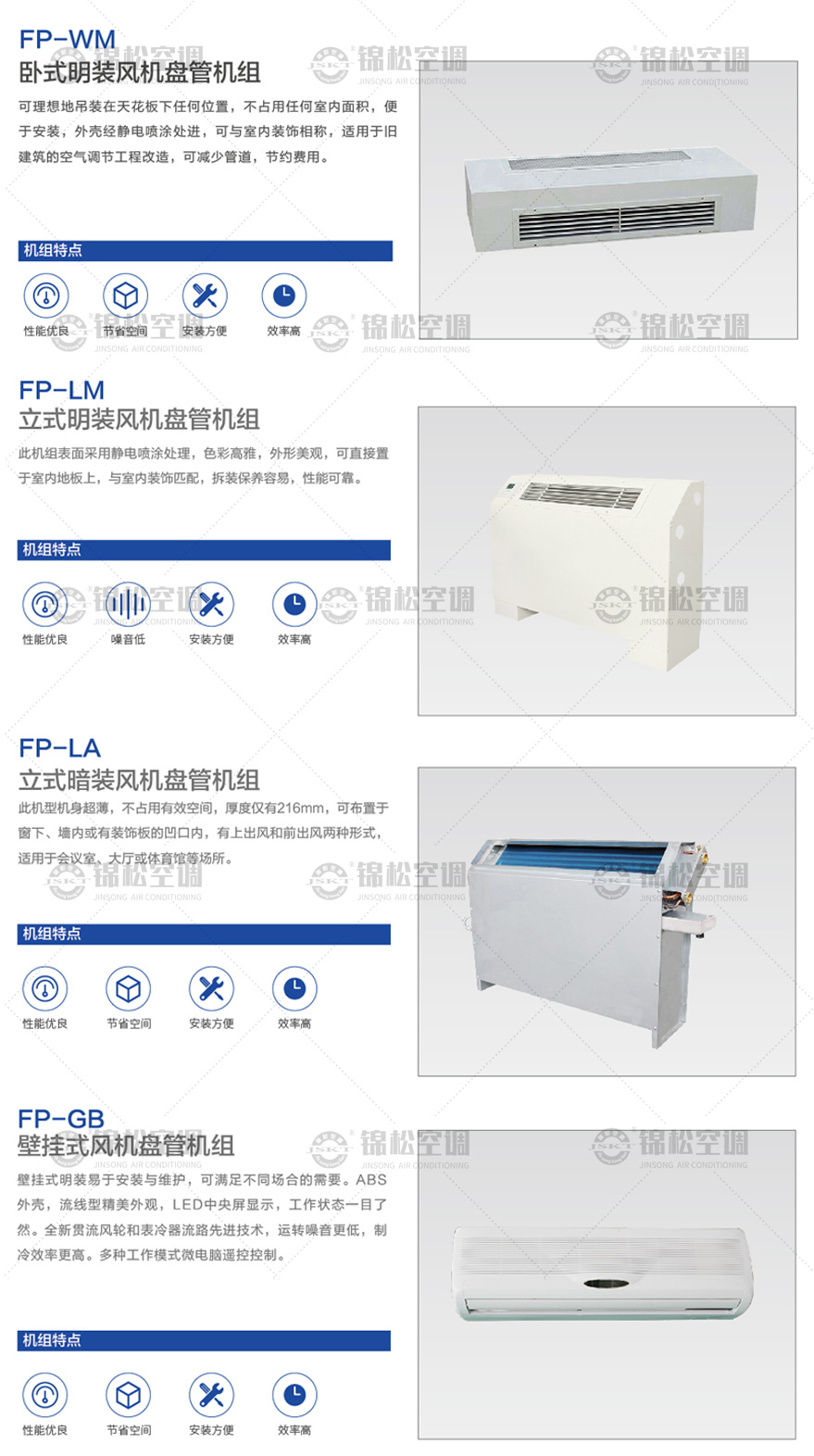 立式暗装风机盘管是中央空调理想的末端产品,其工作原理是机组内不断的再循环所在房间或室外的空气,使空气通过冷水(热水)盘管后被冷却(加热),以保持房间温度的恒定。外形美观,与新风机组配套后广泛应用于宾馆、医院、办公用房、会议厅、展览厅等低噪声场所。